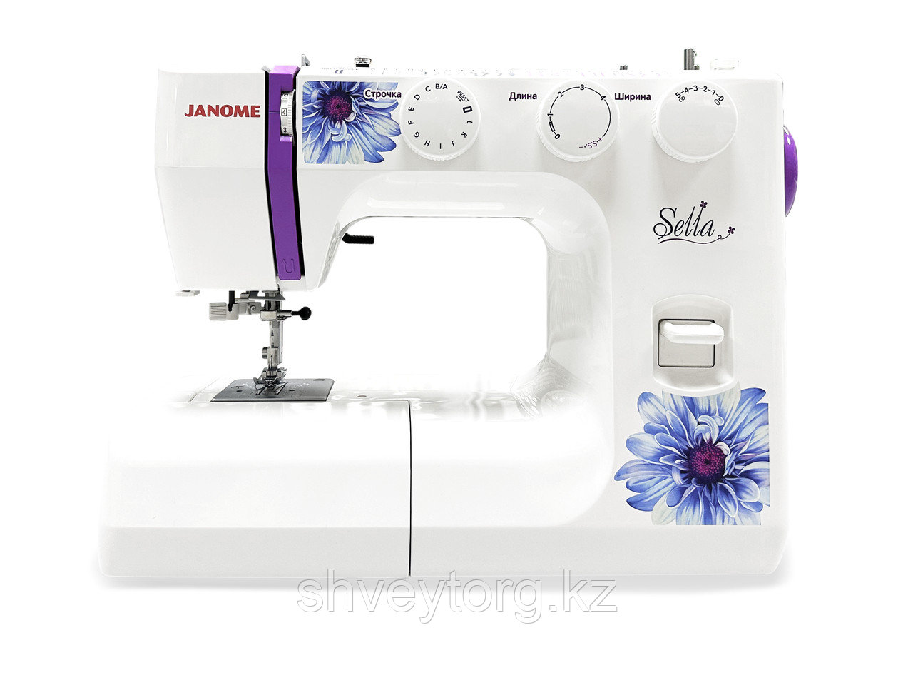 Многофункциональная и удобная швейная машина Janome Sella. Машина предлагает 25 швейные операции, включая автоматическое выметывание петли в 1 этап. Модель Sella имеет вертикальный качающийся челнок, LED подсветку рабочей зоны, регулятор давления лапки на ткань, функцию обратного хода -реверс, встроенный нитевдеватель, и функцию отключения нижнего транспортира ткани, для свободно-ходовой стежки, свободный рукав, для обработки узких частей изделия.