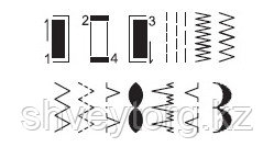 12 видов операций: Данная модель производит оверлочные, прямые, со смещением влево, потайные, трикотажные и другие строчки.